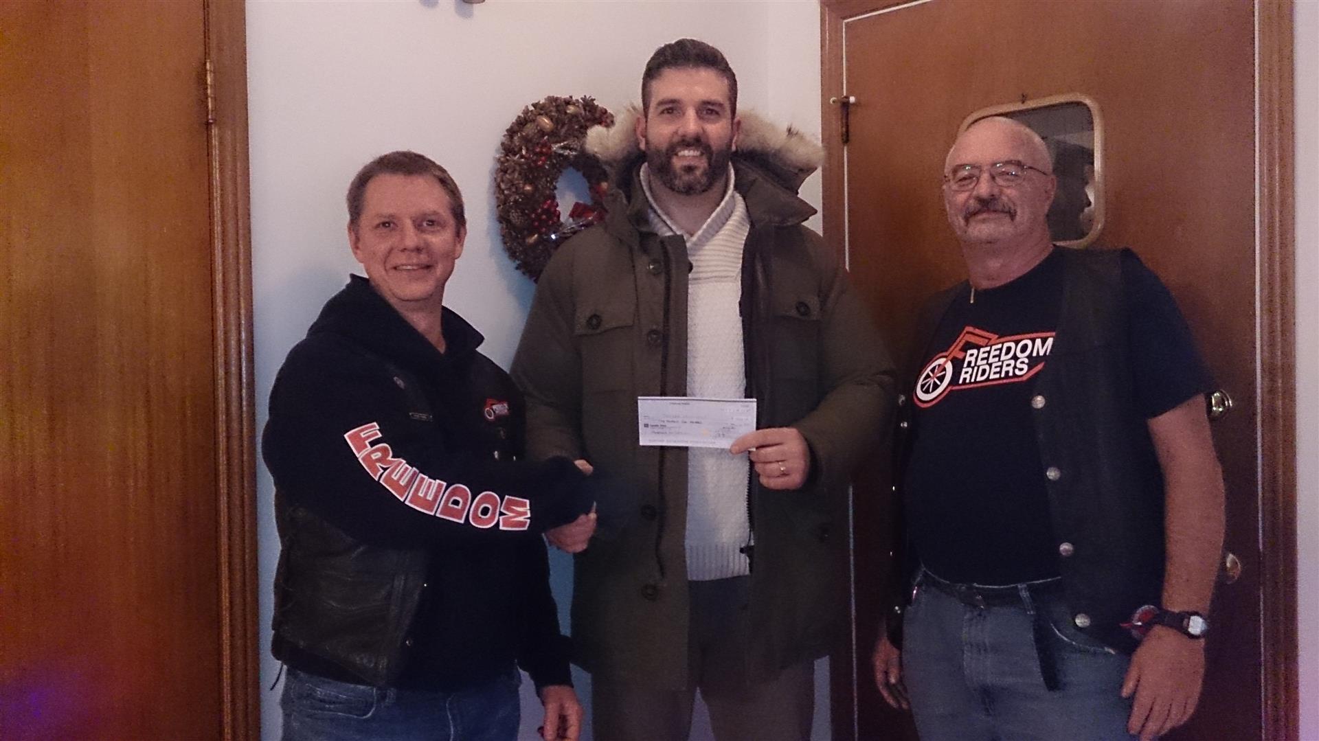Freedom Riders Vice President Dan Nepssy presents a cheque